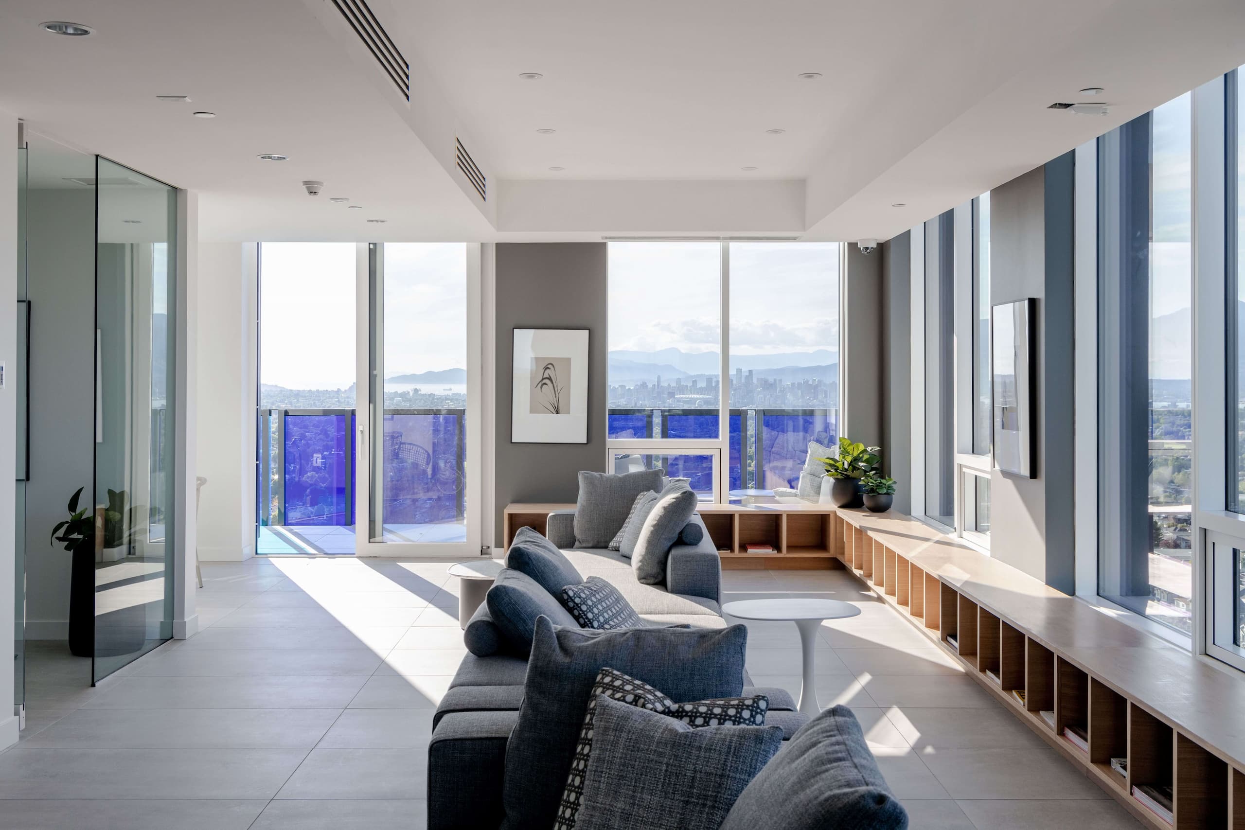 The JOYCE Rooftop Learning & Activity Lounge is surrounded by a large balcony terrace and patio with ample urban gardens, resort-style lounge seating, a fire-pit, barbeque grill for outdoor dining entertainment, and play areas for our young residents. With panoramic views of English Bay, the Vancouver skyline and Burrard Inlet, there is little doubt the Rooftop Learning & Activity Lounge will bring residents together.